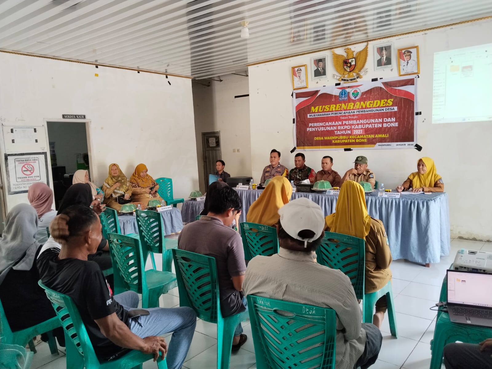 Selasa, 27 Januari 2026. Pemerintah Desa Waempubbu melaksanakan kegiatan musyawarah yaitu Musyawarah Perencenaan Pembangunan Desa atau biasa disingkat MUSRENBANGDES. Kegiatan musyawarah ini dihadiri dan di buka langsung oleh Sekertaris Camat Amali, bpk. SYAHRUDDIN, S.Sos,. M.Si,. Kasi Kesejahtraan dan Pembangunan Kecamatan Amali, Ibu. SITTI AISYAH, S.E., Pihak Pemerintah Desa Waempubbu yang dalam hal ini diwakili oleh Sekertaris Desa Waempubbu, bpk. ANDI SUDIRMSN, S.Pd., beserta jajarannya, Ketua BPD Desa Waempubbu, Ibu. HASNAH., beserta para anggotanya, Pihak dari Puskesmas Amali beserta para jajarannya. Kegiatan ini dilaksanankan setiap satu tahun sekali di awal tahun tepatnya di bulan Januari di mana musyawarah ini bertujuan untuk menampung berbagai macam usulan dari masyarakat khususnya pihak-pihak yang berkaitan langsung di bidang peningkatan Kesehatan dan Kesejahteraan Masyarakat di desa khususnya Desa Waempubbu. Dari hasil kegiatan Musrenbangdes inilah akan dipilah-pilah usulan yang menjadi perioritas rencana pembangunan desa yang nanti akan diteruskan ke Musrenbang tingkat kecamatan untuk nantinya dibawa ke kabupaten untuk ditindak lanjuti.